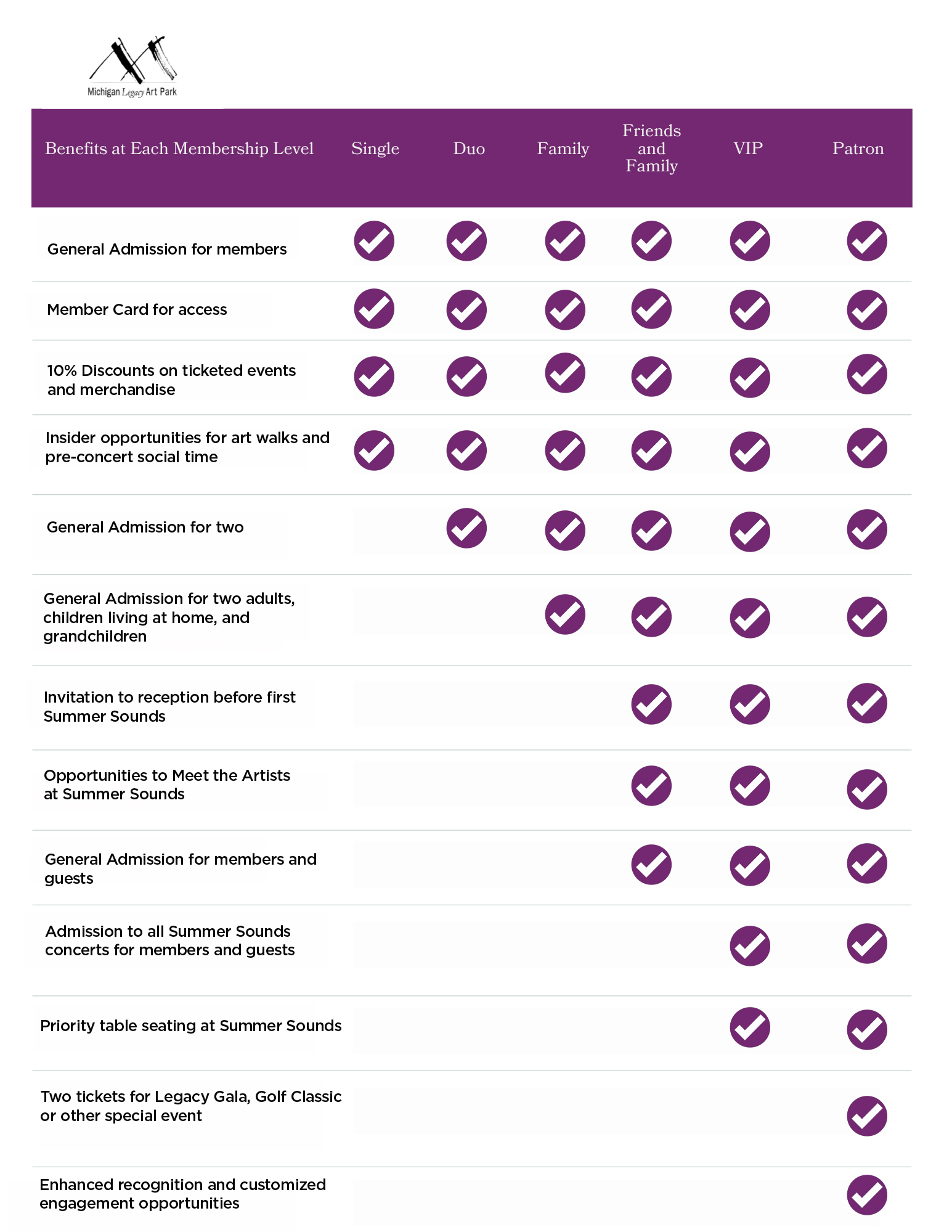Your membership supports our art and education programs at Michigan Legacy Art Park. An annual membership provides you with the access you like, and helps Art Park operations continue year-round.*